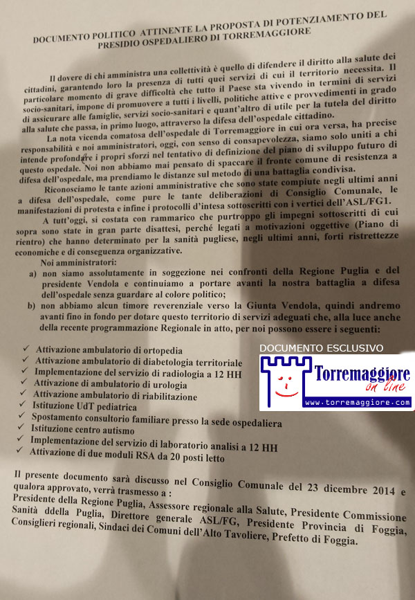 Leggi la nota ufficiale dei consiglieri di opposizione 23/12/2014 – Torremaggiore.Com