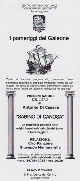 Presentazione del libro Sabino di Canosa il 24 giugno 2015 al Castello Ducale di Torremaggiore