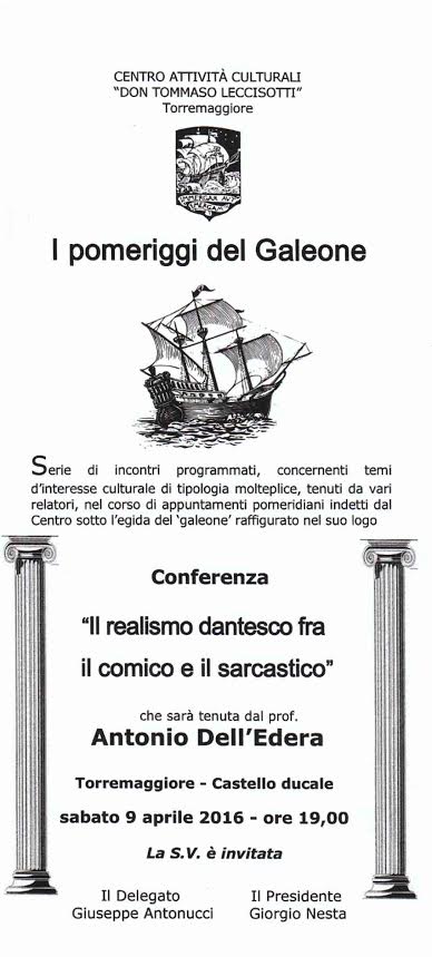 Il realismo dantesco tra il comico ed il sarcastico, se ne parla a Torremaggiore il 9 aprile 2016 al Castello Ducale De Sangro