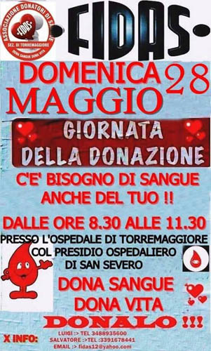 Domenica 28 maggio 2017 giornata della donazione FIDAS presso il Presidio Sanitario Territoriale San Giacomo di Torremaggiore