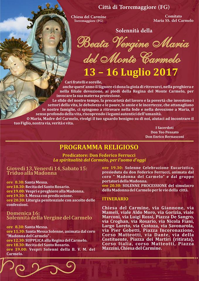 Programma Festa Beata Vergine Maria del Monte Carmelo 13 – 16 luglio 2017 a Torremaggiore