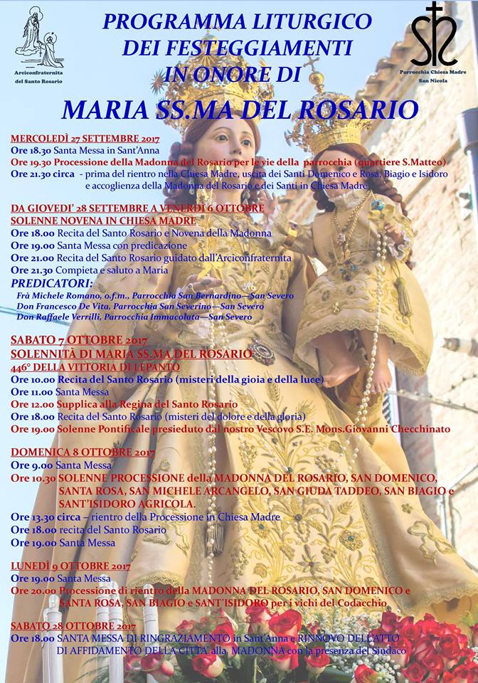 PROGRAMMA FESTA MARIA SS.MA DEL ROSARIO OTTOBRE 2017 TORREMAGGIORE
