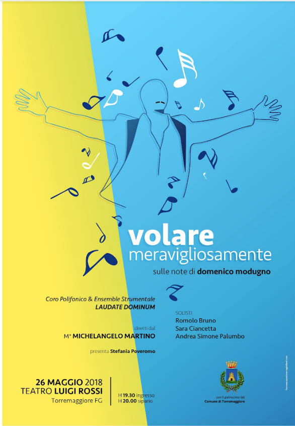 Per ricordare il 90° Compleanno di Domenico Modugno e il 60° anniversario della vittoria al festival di San Remo della canzone “Nel Blu Dipinto di Blu (Volare)”, diventata bandiera della musica italiana e dell’Italia nel mondo, il Coro Polifonico e L’Esemble Strumentale “Laudate Dominum” diretti dal M°Michelangelo Martino, hanno organizzato un concerto con le canzoni del grande cantante pugliese protagoniste.