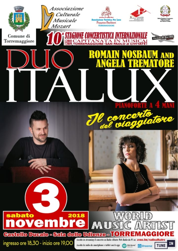 Il Duo Italux il 3 novembre 2018 al Castello Ducale di Torremaggiore con Romain Nosbaum e Angela Trematore