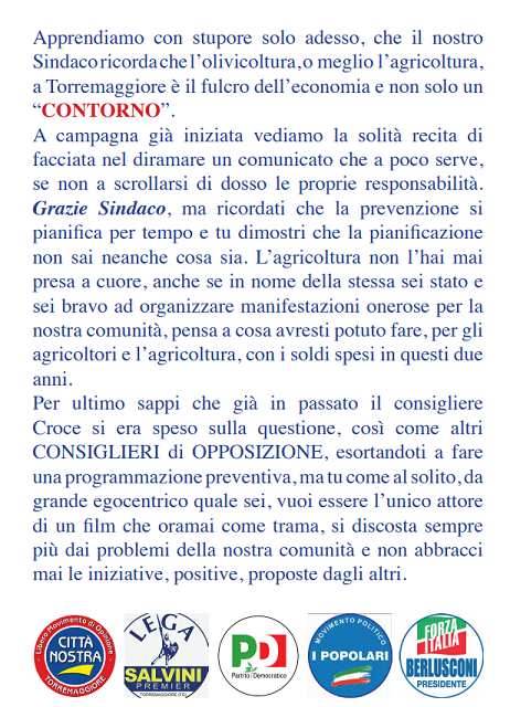 Le opposizioni attaccano il Sindaco Monteleone sul tema dell’agricoltura locale