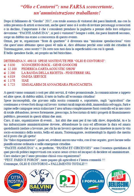 Olio e contorni 2018: per le opposizioni una farsa sconcertante con una amministrazione traballante!