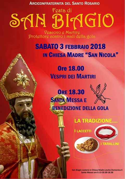 Programma festa di San Biagio 3 febbraio 2018 a Torremaggiore