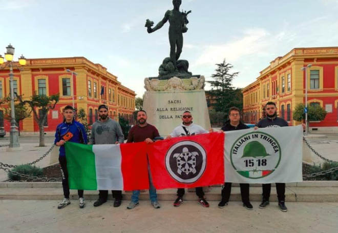 Torremaggiore, Foggia 10 Novembre – Nel pomeriggio di oggi, all’interno del progetto “15-18 Italiani in trincea”, membri foggiani e locali di CasaPound Italia hanno riqualificato il Monumento dedicato ai Caduti della Grande Guerra ubicato nella centrale Piazza dei Martiri. “Abbiamo bonificato l’intero perimetro e pulito la targa dedicata ai nostri Caduti – si legge nella nota diffusa da CasaPound Italia – ridando all’area il lustro che merita, trattandosi dei nostri soldati morti eroicamente durante la Grande Guerra”. “Era vergognoso lo stato di incuria e degrado in cui versava il Monumento prima del nostro intervento – continua la nota di Cpi – come lo è il disinteresse colpevole delle istituzioni nei confronti di chi ha sacrificato la vita per i confini della nostra Patria, soprattutto data la vicinanza con le celebrazioni per il Centenario della Vittoria, tenutesi neanche una settimana fa”.