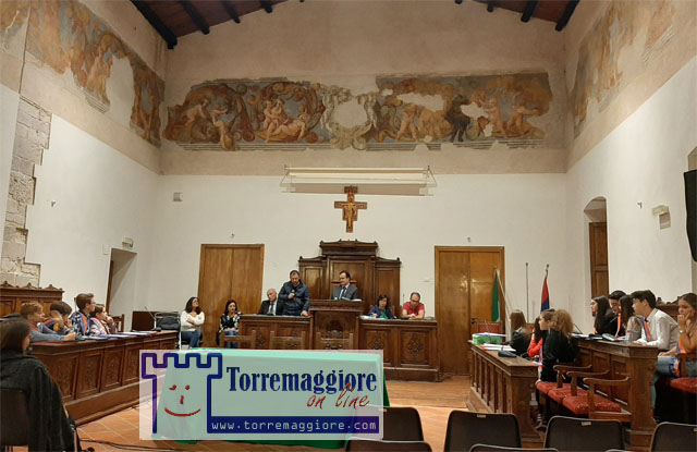 Nella sera dell’11 ottobre 2019 si è svolta la sessione del consiglio comunale dei ragazzi presso la Sala del Trono del Castello Ducale De Sangro di Torremaggiore. I ragazzi presenti nei banchi del consiglio comunale hanno posto all’Amministrazione Di Pumpo quesiti su varie tematiche: il maggiore utilizzo della navetta per raggiungere le scuole anche in orari pomeridiani, la proposta dell’acquisto di una navetta elettrica, la creazione di un’area attrezzata per pic-nic in Pineta per i turisti, il ripristino del campo di calcetto della Scuola Media Ex Celozzi della Pineta, la creazione di piste ciclabili, l’inserimento di nuovi cassonetti per rifiuti, la creazione di marciapiedi per raggiungere l’Oratorio San Sabino e il locale Il Solito Posto su Via Reinella , la creazione di un parco giochi in Pineta e localizzare nuovi distributori di acqua potabile. Altre richieste sono state poste sul rifacimento del manto stradale nel percorso urbano e su vari suggerimenti per la raccolta differenziata. Il sindaco di Torremaggiore e i membri della Giunta hanno replicato a queste richieste inserendo questi suggerimenti nell’agenda programmatica dei lavori della giunta, compatibilmente con la presenza effettiva dei fondi comunali e con i lunghi tempi di risposta ai progetti presentati in Regione. Appello finale del Presidente del Consiglio del Comune di Torremaggiore nella persona del dott. Giuseppe Ferrucci che ha ringraziato i ragazzi per le iniziative costruttive che sono state poste ed ha concluso il suo intervento invitando tutti alla collaborazione. Una bella pagina di confronto tra le istituzioni e le giovani generazioni che merita di avere grande visibilità per accrescere il senso civico e collaborativo tra cittadinanza e istituzioni.