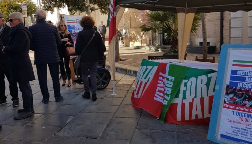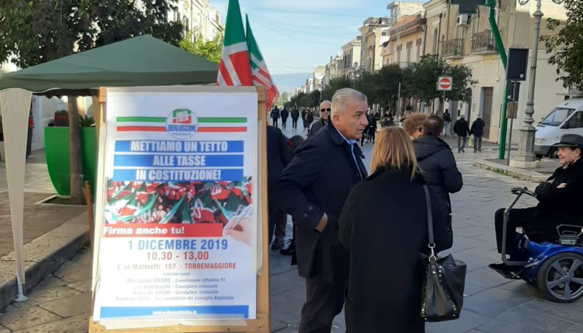 Domenica 1 dicembre siamo tornati in piazza per raccogliere le firme per la proposta di legge di inserire nella Costituzione italiana un tetto alle tasse. È stata anche l’occasione per incontrare diversi cittadini e ascoltarne le doglianze o richieste. Una giornata condivisa anche con gli amici della Lega, dediti alla raccolta delle firme per lanciare lo sfratto politico al governatore della Puglia Emiliano. Come Forza Italia, continueremo con costanza e coerenza a svolgere il nostro ruolo di controllo e propositivo, in strada, come in consiglio comunale, in stretta relazione con i cittadini. Presente all’evento anche il Vice Presidente del Consiglio della Regione Avv. Giandiego GATTA, molto attivo sulle criticità del nostro territorio, i consiglieri comunali De Simone e Monteleone ed il commissario Mariapina Zifaro.