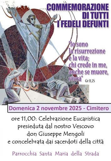 (TMOL) 2 novembre 2025: Santa Messa al Cimitero Comunale alle ore 11.00 con il Vescovo della Diocesi di San Severo Mons Giuseppe Mengoli e con tutto il clero torremaggiorese. Anima la liturgia la Parrocchia Santa Maria della Strada.