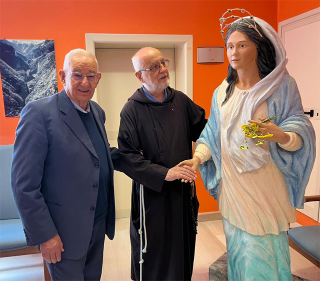 La statua che raffigura la Vergine Maria, con il grembo appena pronunciato, è stata accolta nella mattinata di domenica 25 maggio 2025 nell’Hospice del Presidio Territoriale di Assistenza (PTA) Nicola Bellantuono – ex Ospedale San Giacomo, in via Salvatore Ciaccia. Erano presenti Anna Maria Gualano, Direttrice del Distretto Socio-Sanitario di San Severo; Massimo Lombardi, Responsabile dell’Hospice; Carolina Villani, coordinatrice del Servizio Sociale distrettuale; don Renato Borrelli; padre Giovanni Maria Leonardi; suor Maria Villani e il personale sanitario.