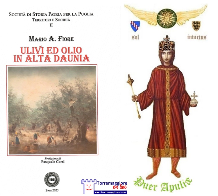 Per i tipi della Società di Storia Patria per la Puglia, nella collana “Territori e Società”, vede la luce il saggio dell’Avv. Mario A. Fiore “Ulivi ed olio in alta Daunia”, con un sottotitolo sia descrittivo che impegnativo: “notizie storico-giuridiche e paralipomeni del quaternus excadenciarum Capitanate”. L’Autore, prendendo spunto dalla nostra locale specie definita “peranzana”, si è voluto soffermare sulla coltura della pianta e del suo prezioso frutto dall’antichità ad oggi, soffermandosi ad illustrare le particolari piantagioni nell’ultimo periodo dell’imperatore Federico II di Svevia, nella nostra regione con particolare riguardo alle località di Fiorentino, Casalnuovo, Apricena, Civitate (San Paolo), Lesina e Serracapriola. Buona lettura.